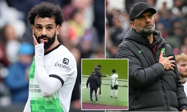 New footage has surfaced that could show the real reason behind Mohamed Salah’s touchline spat with Jurgen Klopp in Saturday’s 2-2 draw against West Ham.