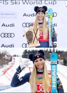 At 41, Lindsey Vonn continues to rewrite the rules of alpine skiing, charging to yet another World Cup podium with a beaming smile and unbreakable spirit. In the women’s downhill on the historic Di Prampero course in Tarvisio, Italy, on January 17, 2026, the American legend secured third place—her fifth consecutive podium in five downhills this season—proving that greatness doesn’t fade; it evolves into something even more inspiring.