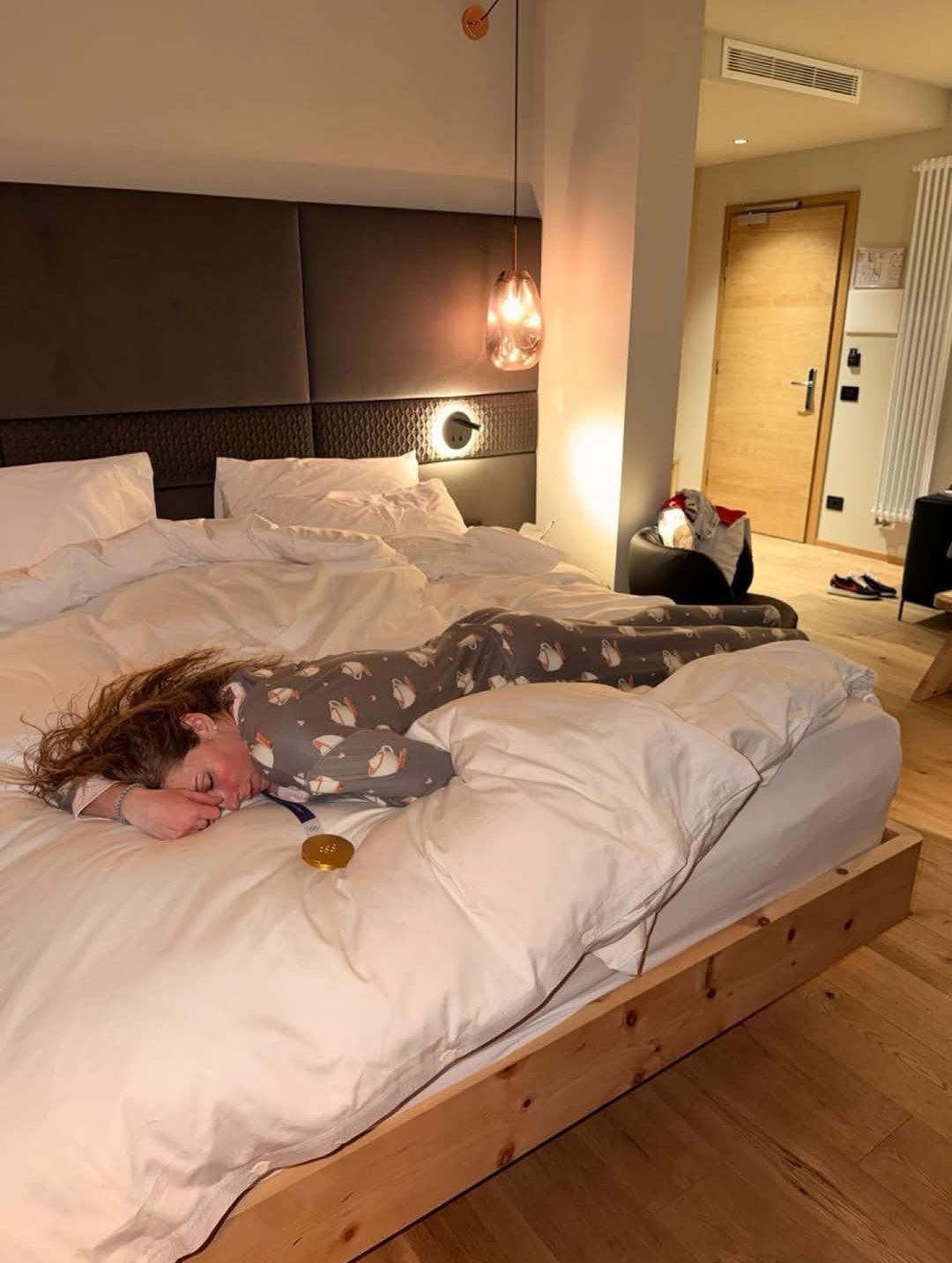 Her understated post, featuring the gold medal resting nonchalantly across her chest while she chills out, has exploded online. Fans are calling it the ultimate flex: win Olympic gold, then act like it’s just another Tuesday.