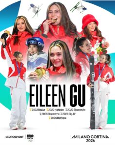 The American-born superstar capped a dominant run at the 2026 Winter Olympics in Milano Cortina with a stunning defense of her women’s freeski halfpipe title on February 22. Scoring a massive 94.75 on her final run, Gu topped the podium in Livigno, Italy, ahead of teammate Li Fanghui (silver, 93.00) and Great Britain’s Zoe Atkin (bronze, 92.50). The victory delivered her first gold of these Games and her third overall Olympic gold, adding to the two she won in big air and halfpipe at Beijing 2022.