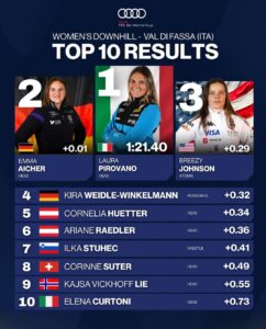 Top 10 Results – Women’s Downhill, Val di Fassa: