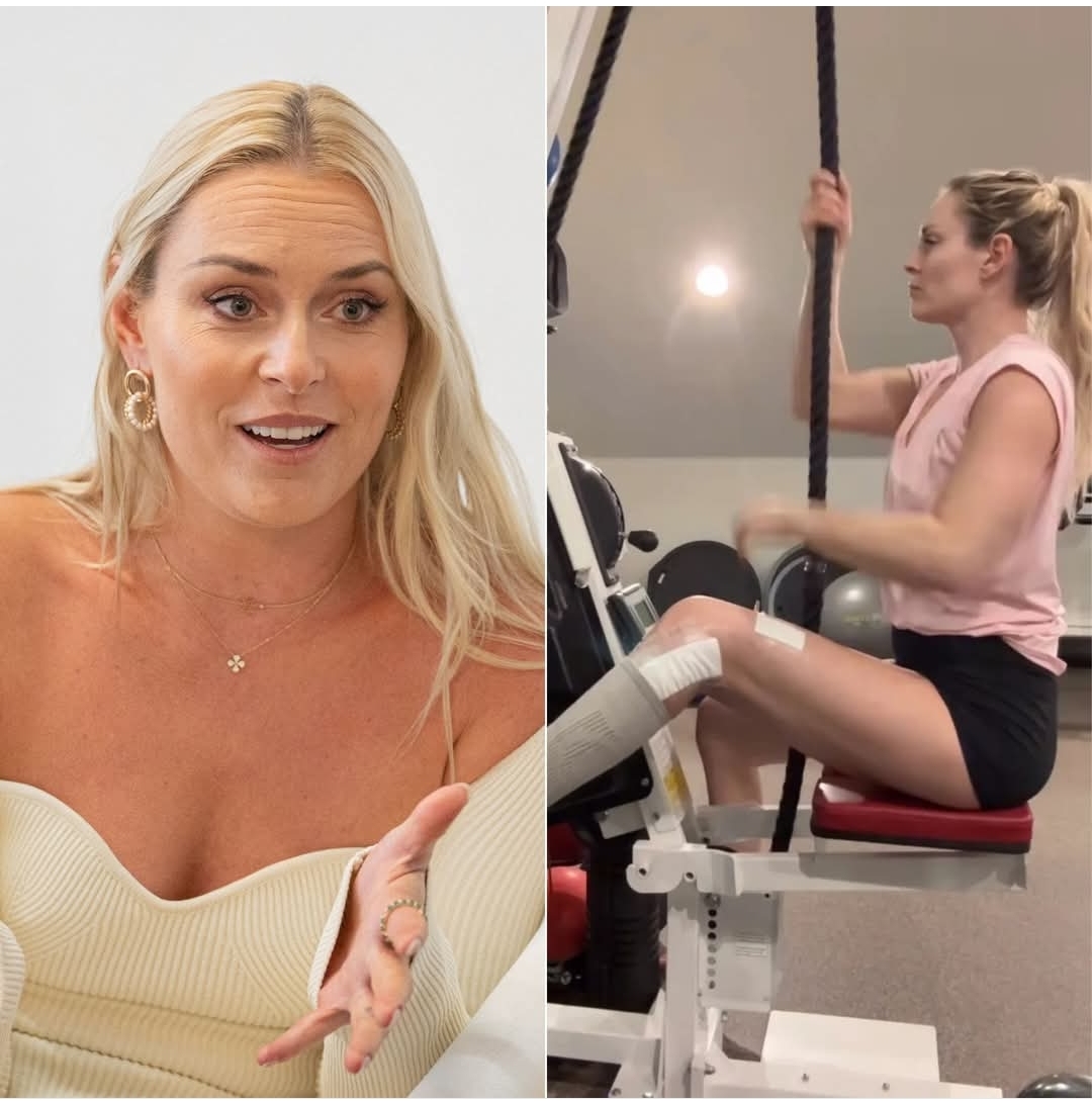 Olympic skiing legend Lindsey Vonn is giving fans a raw, unfiltered look at her grueling recovery, sharing shocking footage of an intense gym session where she’s visibly sweating and grimacing through pain—with her surgically repaired leg heavily bandaged, elevated, and braced like it’s still on the edge.