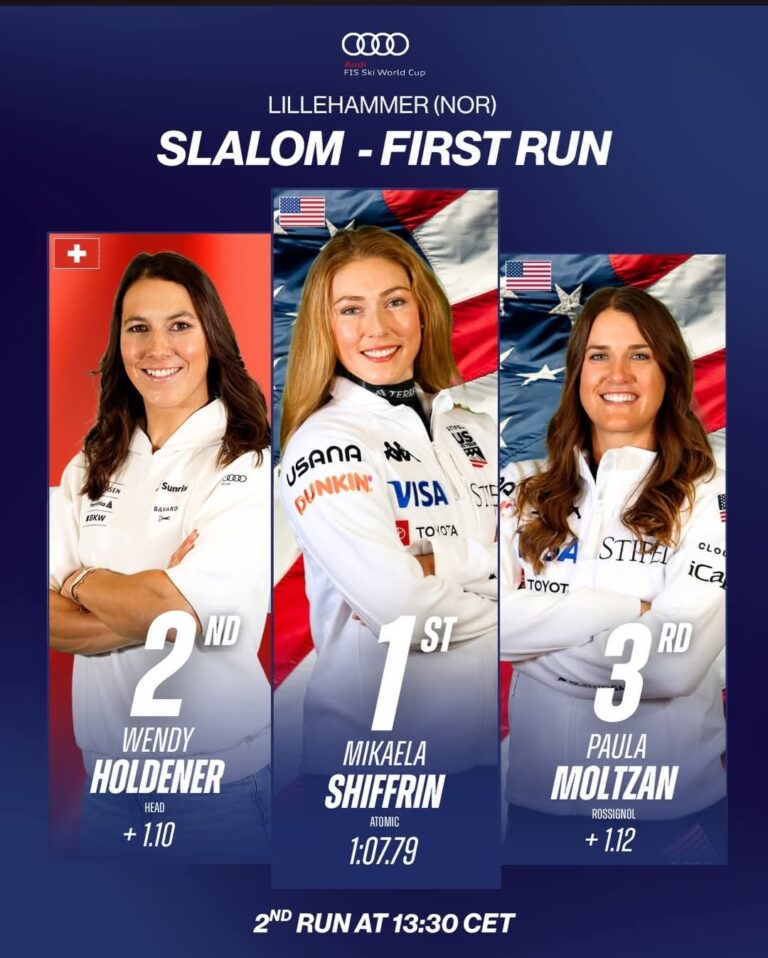 Holdener, a former overall contender and slalom specialist, is lurking just over a second back — dangerous territory on a course that can bite in the second run as ruts form and fatigue sets in. Moltzan’s +1.12 keeps two Americans in the hunt for the podium and adds extra firepower to Team USA’s charge.